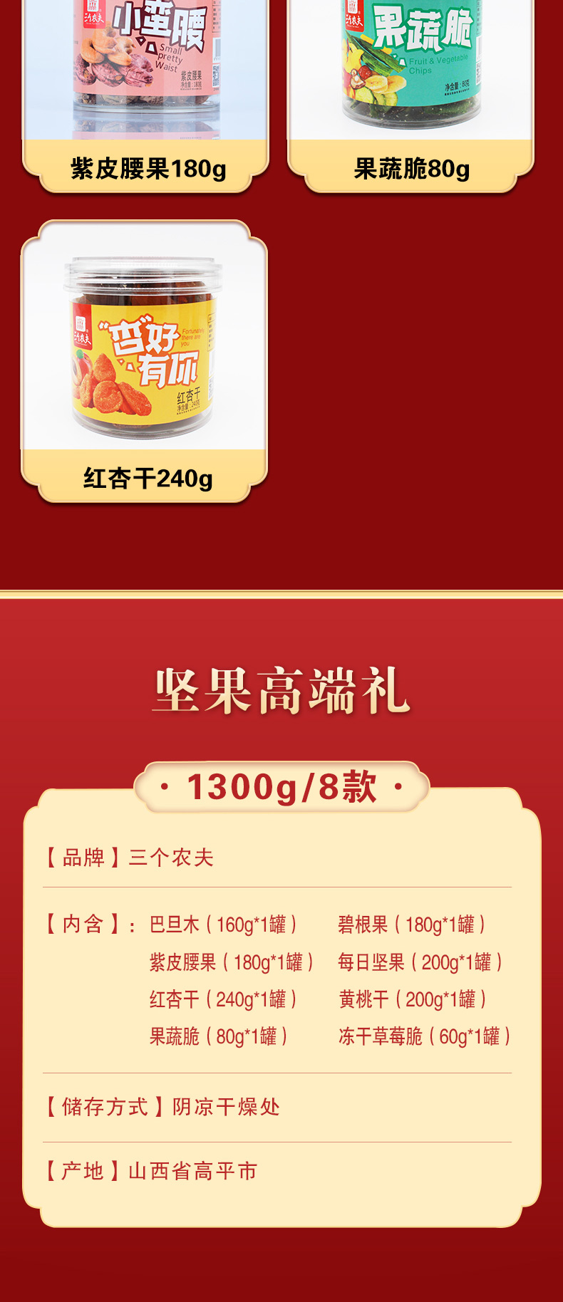 三个农夫坚果零食礼盒(1300g/8款)