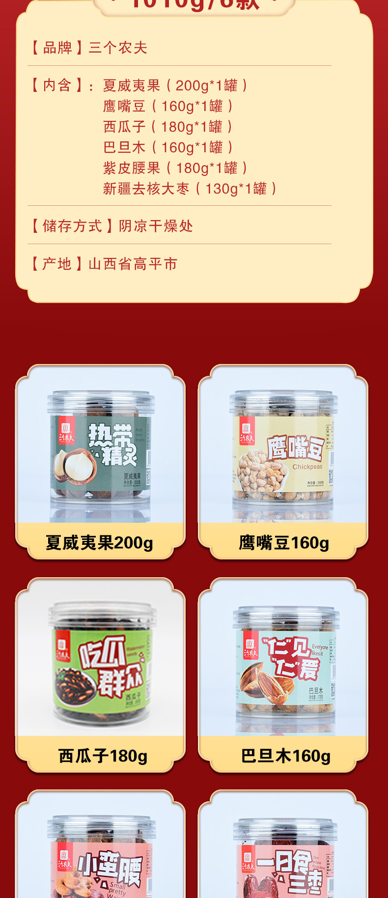 三个农夫坚果零食礼盒(1010g/6款)